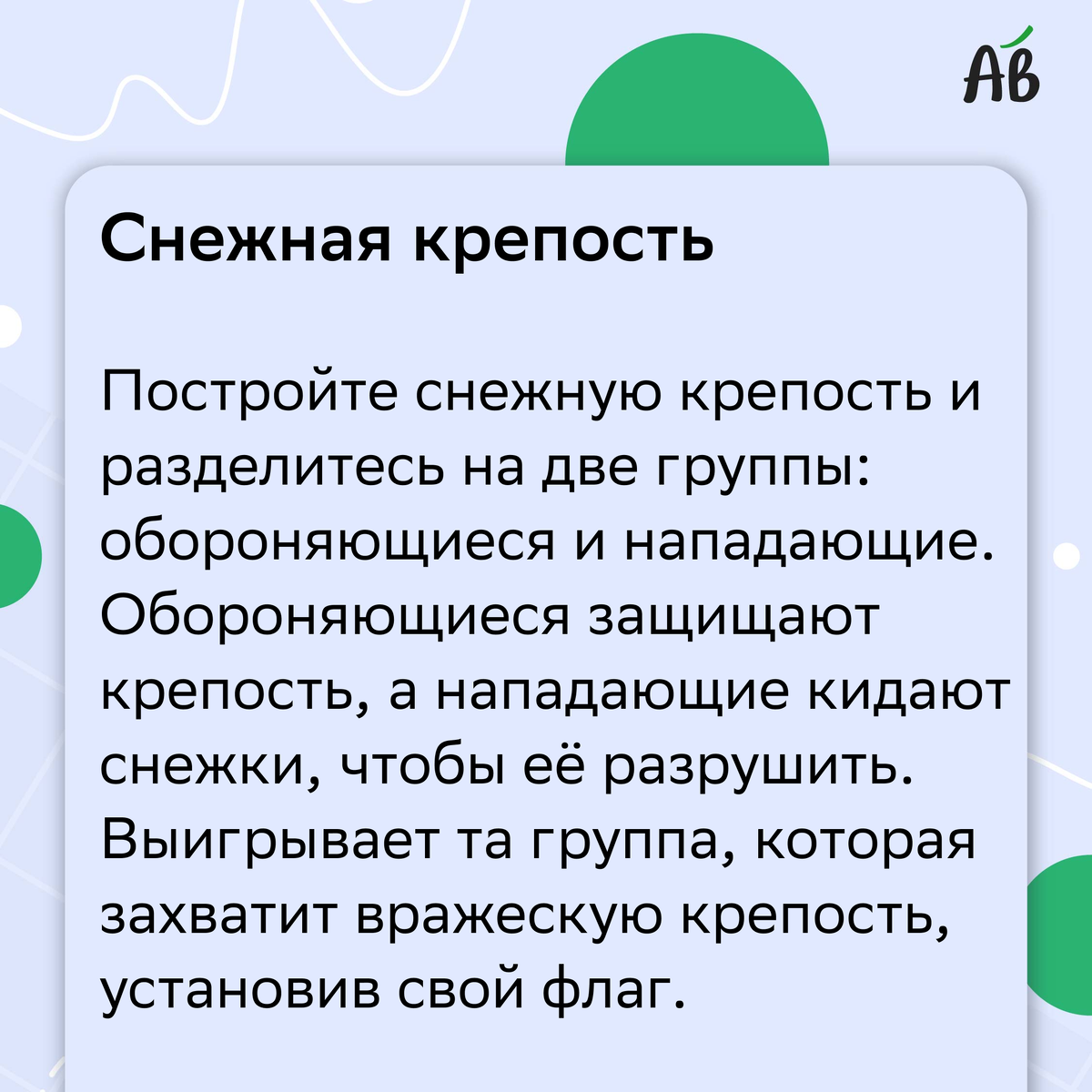 Зима — время для необычных приключений и весёлых забав. Сугробы, морозный воздух и праздничное настроение идеально подходят для игр, которые вернут в детство или подарят новые эмоции всей семье. Давайте вспомним, какие зимние игры популярны в России и могут стать настоящим открытием для вашей семьи. 📌 В карточках вы найдёте подробное описание каждой из них: А вы играли в детстве в такие зимние игры?