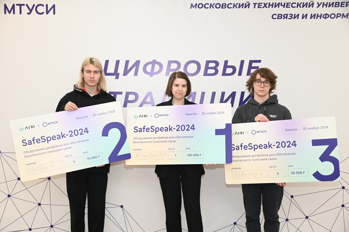 Заявки на участие в соревновании подали более 240 человек из России, Эфиопии, Казахстана, Вьетнама, Бразилии, Китая, Узбекистана и Индии. Московский технический университет связи и информатики(МТУСИ) и Институт AIRI завершили хакатон SafeSpeak 2024, посвященный разработке технологий обнаружения аудио-спуфинга. Решения участников были направлены на работу с актуальными проблемами безопасной голосовой аутентификации и защиту биометрических систем от атак. Системы автоматической верификации спикера (Automatic Speaker Verification, ASV) определяют, принадлежит ли голос в аудиозаписи заданному человеку. Они находят применение в различных областях, например, в финансовом секторе такие системы применяют для аутентификации пользователей при проведении транзакций или в смарт‑устройствах для обеспечения эксклюзивного доступа владельца к управлению оборудованием. На сегодняшний день в обнаружении поддельного голоса используется множество методов, включая те, что основаны на предобработке сырой ау