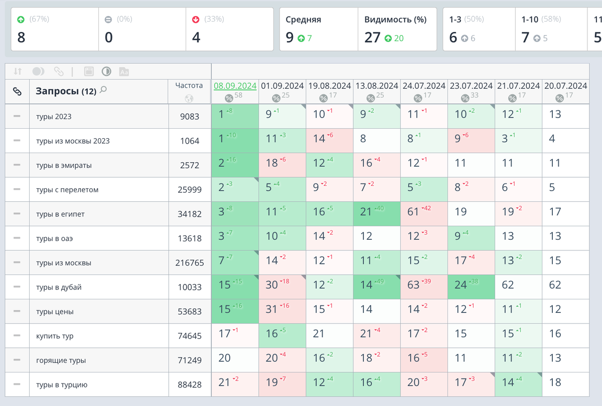 - Позиции в выдаче: отслеживайте, на каких местах по целевым запросам находится сайт.