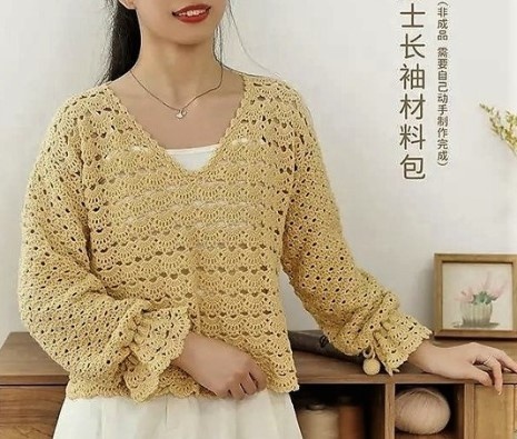 Кружевных романтических блузок в гардеробе никогда не бывает слишком много, особенно таких очаровательно веерных, чудесного тона золотой дымки! Модель очень дружественна к начинающим вязальщицам, у нее крайне простая выкройка и совершенно не сложный узор.