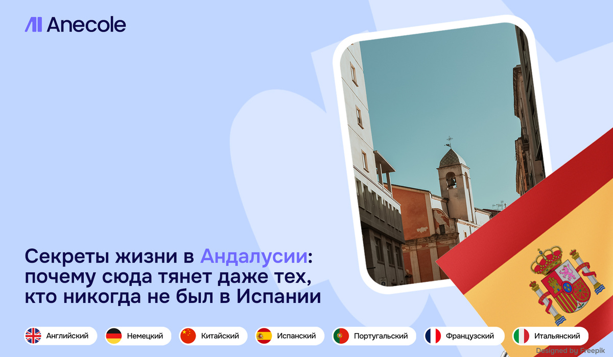 Андалусия — это солнечная жемчужина Испании, регион, который завораживает своей культурой, природой и особым образом жизни. Даже если вы никогда не были в Испании, имя этой автономии вызывает ассоциации с фламенко, тапас, старинными замками и песчаными пляжами. Почему же Андалусия манит так многих? Разберём секреты её магнетизма и узнаем, что делает жизнь в этом регионе такой особенной. Андалусия — это самая южная автономная область Испании, расположенная между Средиземным морем и Атлантическим океаном. В состав региона входят восемь провинций, включая Севилью, Гранаду, Малагу и Кадис. Этот регион — настоящий культурный и природный кладезь, сочетающий в себе мавританское наследие, испанские традиции и непревзойдённые пейзажи. Чтобы прочувствовать всю магию Андалусии и по-настоящему понять её душу, важно не просто посетить этот регион, но и научиться говорить на испанском. Ведь язык — это ключ к сердцу культуры. Anecole — это не просто онлайн-школа. Это место, где языки оживают, превращ