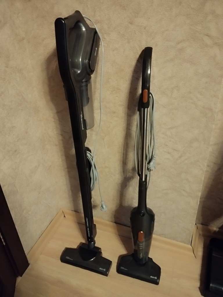 В этом году я купила четыре! пылесоса. Хотя за всю свою жизнь до этого я покупала всего лишь два. А все потому, что появилось много всего нового, а я была и не в курсе. Пылесосы теперь не похожи на большие неповоротливые ящики с пылью. Они стоят аккуратно за дверью, готовые к уборке. Занимают мало места и их не надо мучиться вытряхивать или собирать перед уборкой. Не нужно искать место под большую коробку, которая не лезет ни в один шкаф. Я хотела избавиться от своего старого пылесоса и купить обычный пылесос с проводом для ковров или какого-то сухого мусора и пыли. Купила тот, что справа на картинке. Он отлично стоит и занимает мало места. Провод не очень удобен, зато не надо беспокоиться об аккумуляторе. Но как показала практика, этот двигатель и контейнер внизу мешают ему пролезать в узкие места: за диван, за холодильник или за стиралку. Щетка в нем без щетины и с ковров он не собирает ничего. Почему-то слабо засасывает воздух. Купила пылесос другой конструкции, тот, что слева. Т