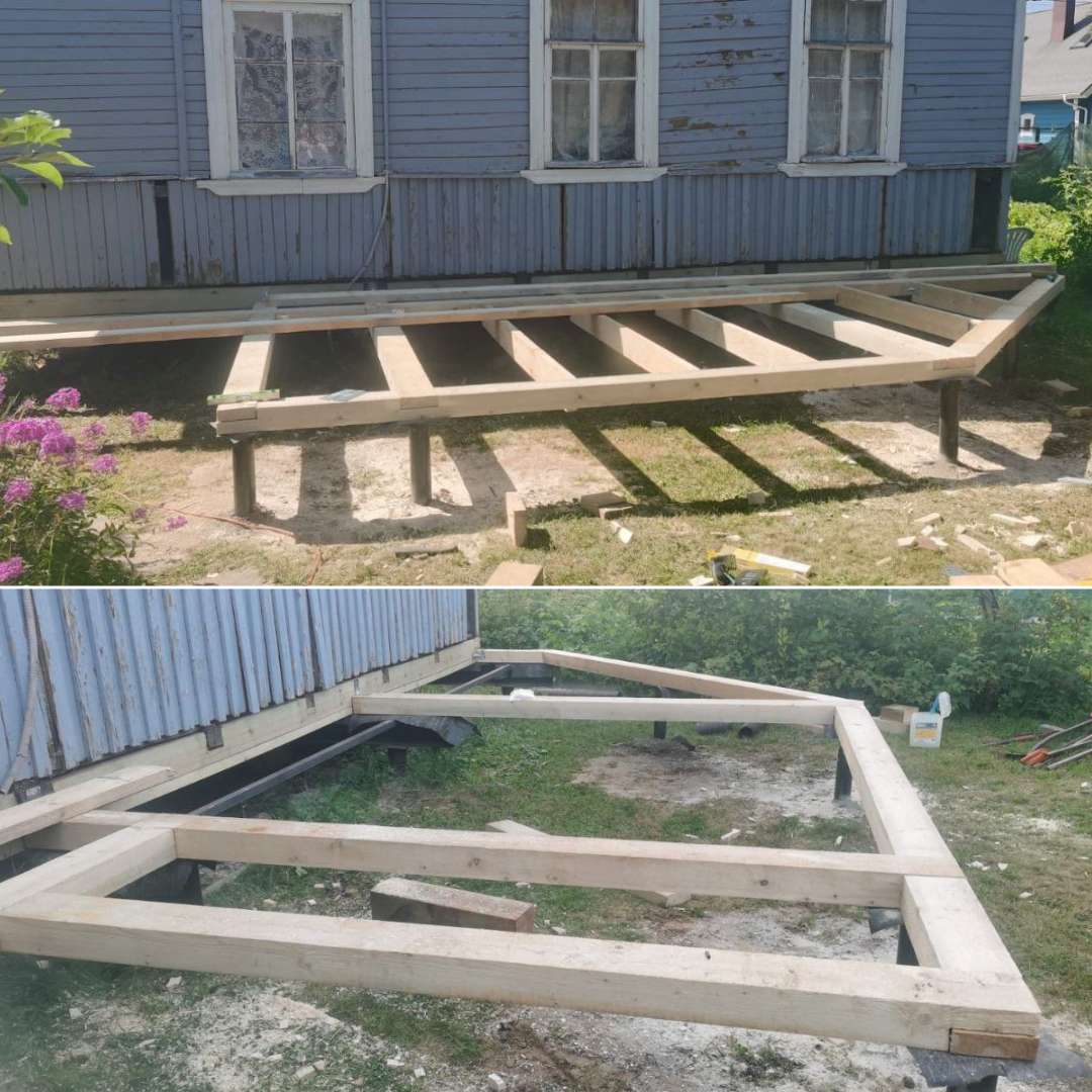 Мы рады поделиться с вами одним из наших недавних проектов, который мы реализовали в массиве Васкелово, расположенном в Ленинградской области. К нам поступила заявка на выполнение нескольких важных задач: 1. Изготовление террасы: Мы создали уютную террасу на свайно-винтовом фундаменте, которая не только эстетически украсила участок, но и обеспечила надежную поддержку для всей конструкции. 2. Перенос входной группы: Мы осуществили перенос входной группы, что позволило оптимизировать доступ и улучшить функциональность пространства. 3. Новый пол на веранде: Мы установили новый пол, который стал отличным дополнением к веранде, обеспечив комфорт и стиль. 4. Замена нижнего венца: Мы также заменили нижний венец по периметру всего дома и под пятой стеной, что значительно повысило надежность и долговечность конструкции. 🕔Вся работа была выполнена всего за 3 дня 💰Стоимость проекта составила около 120 000 рублей, при этом материалы заказчик оплатил отдельно Мы стремимся предоставлять услуги