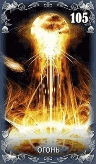 Карта Огонь это сто пятая карта колоды, которая обозначает творческий потенциал, жизненную энергию, динамическое развитие событий.