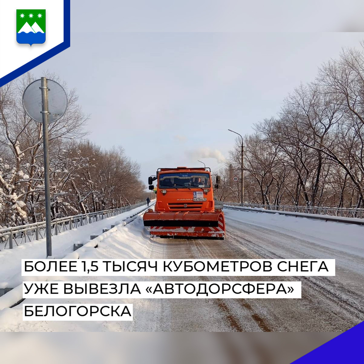 Более 1,5 тысяч кубометров снега уже вывезла «Автодорсфера» Белогорска