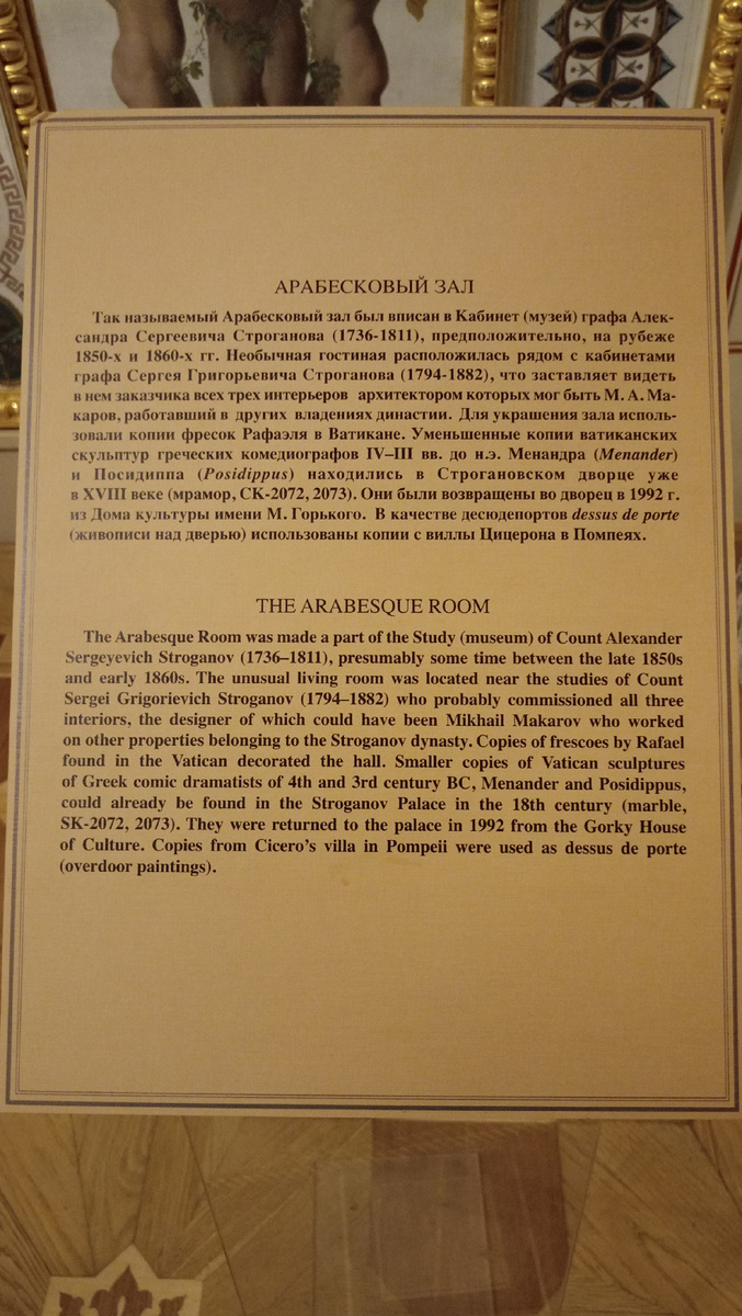 Арабесковый зал просто поражает и даже чуть подавляет роскошью. Но это, конечно, лишь мои личные ощущения.