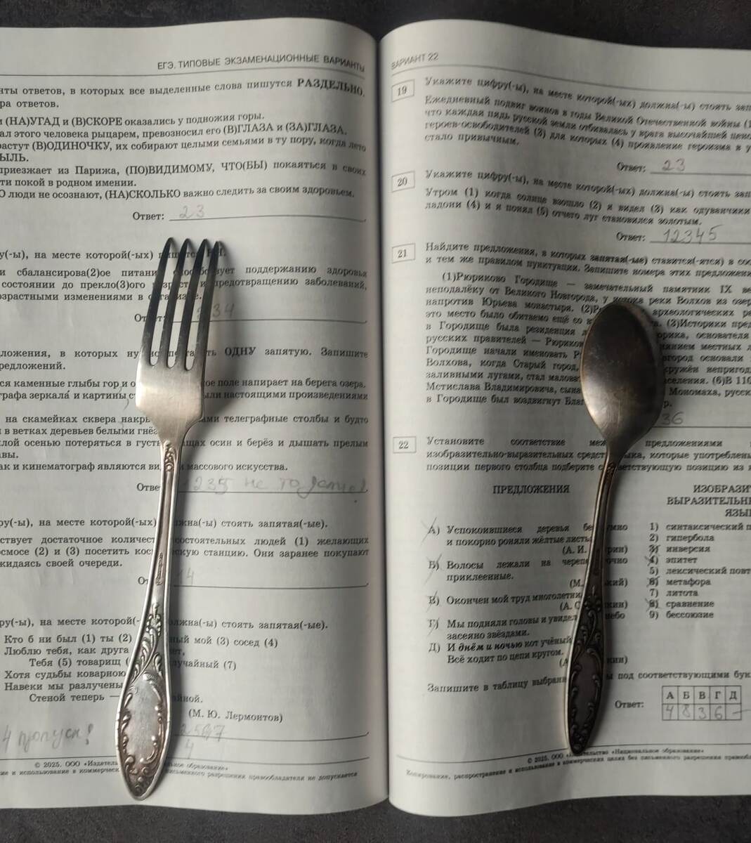 Раньше у меня была рубрика «Решаю Цыбулько». Теперь у нас Дощинский, но задача прежняя: максимально быстро пройти тест из нового сборника и поймать себя на ошибках. Если я дам себе 40 минут и проверю все свои ответы, ошибок у меня не будет. Ну и смысл? Обычно я сажусь с бумажным сборником тестов на кухне около плиты и начинаю решать. На плите в это время должно что-то вариться и требовать внимания. Сегодня жарится картошка. Её надо перемешивать иногда, посыпать луком и сушеной зеленью. Надо менять температуру. Итак. Тест №22 из сборника 2025 года. Сборник у меня в этом году дурацкий заказался: очень бледные буковки по сравнению с тем, что было раньше. Я потратила 27 минут. В это время включаю подскоки для перемешивания картошки и нарезки лука. То есть я была максимально несосредоточенной для чистоты эксперимента. Начала с №4. Всегда так делаю. Мне лень возиться с №1-3: они требуют внимания, а я в начале работы всегда тороплюсь. Оставлю их на потом. В реальности я бы делала эти задания