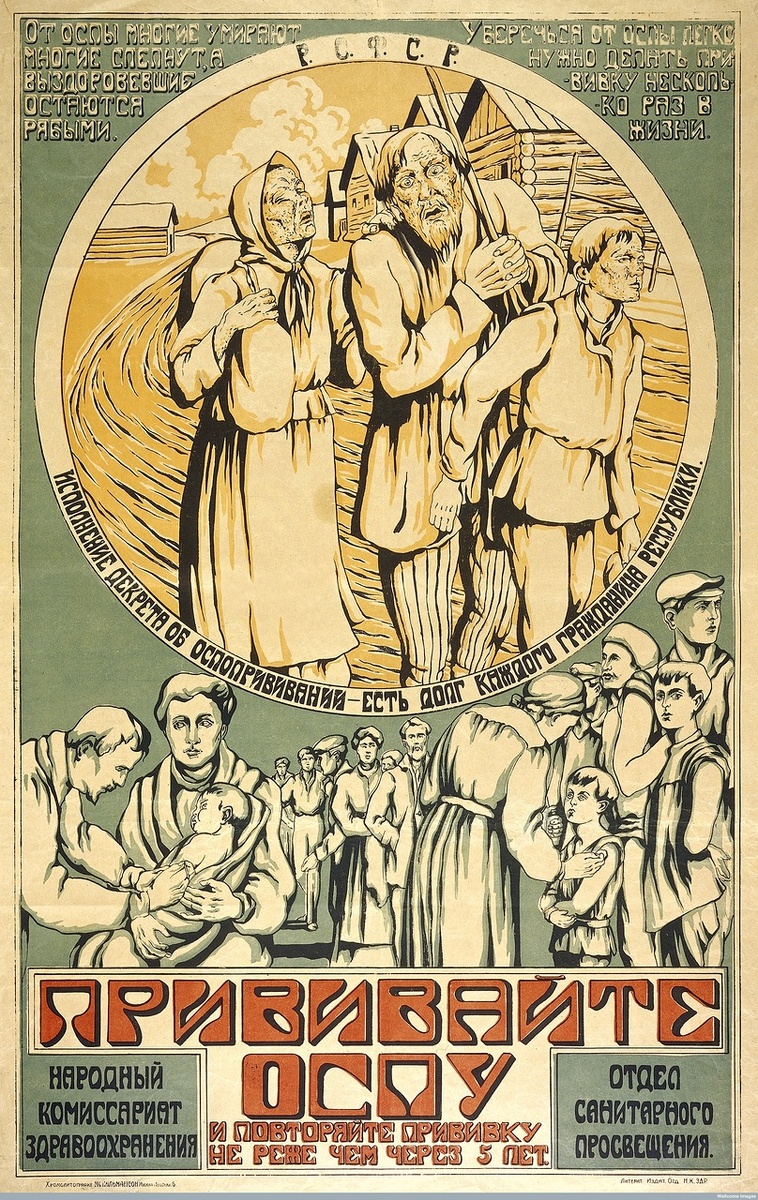 В те годы массовая противооспенная вакцинация сопровождалась не менее массированной агитацией и пропагандой в пользу прививок среди населения.