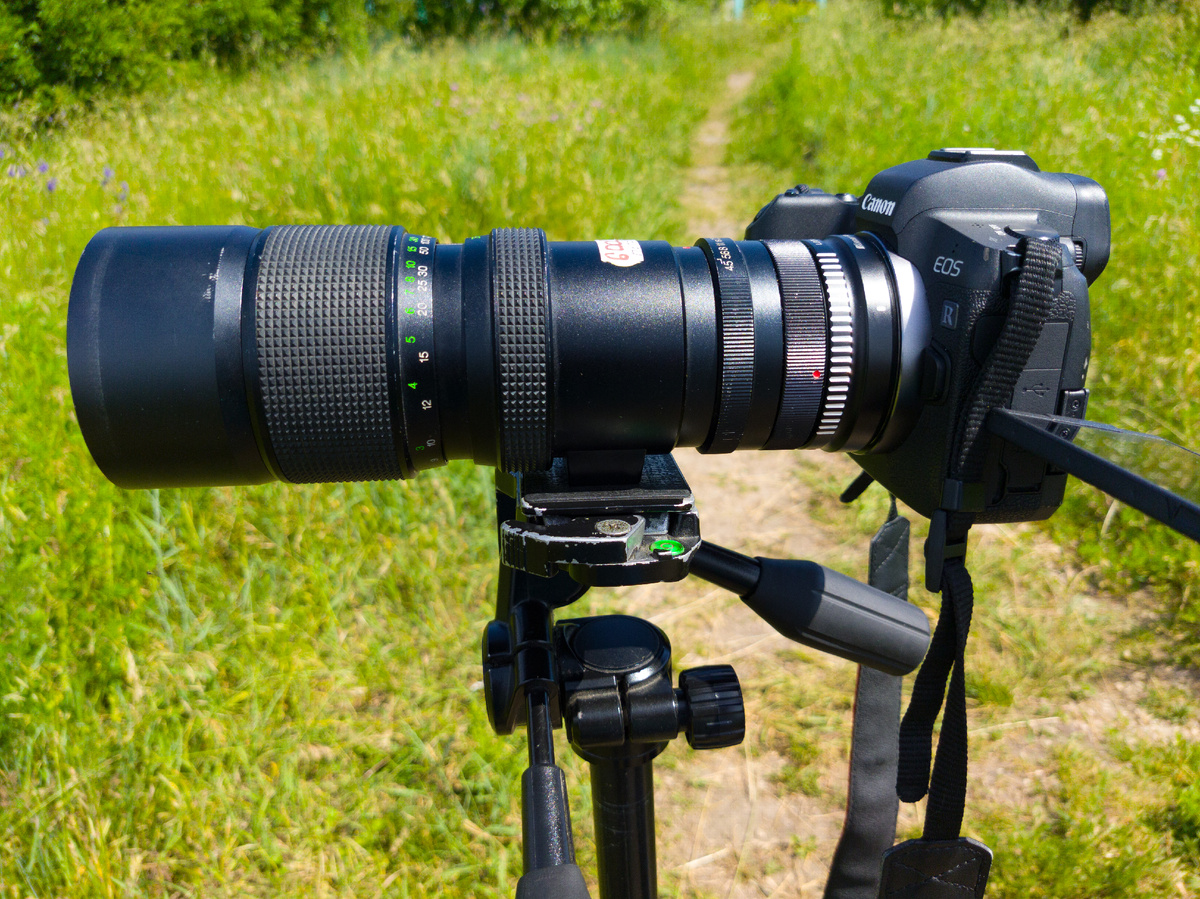 Вот так выглядит объектив Vivitar 75-260mm f/4.5. В будущем планирую сделать на него обзор. Краткое впечатление. Фотографировать с рук на этот объектив довольно не удобно, так как объектив достаточно тяжелый, габаритный. И несмотря на то, что у объектива постоянная диафрагма 4.5, сам объектив достаточно тёмный, и днем в солнечную погоду приходится задирать iso до 500-800, чтобы сделать приемлемый снимок без шевеленки. А уж снимать видео с рук и подавно нереально. Из-за этого очень сильно напрашивается штатив даже днем в солнечную погоду, что я и делал на даче. Но тут возникает другая проблема. Если снимать со штатива на минимальном iso, например 100, то выдержка становится достаточно длинной, особенно при закрытых диафрагмах, из-за чего легко получить смаз при легком дуновении ветра, либо деревья (и другие подобные объекты съемки) будут смазаны. Еще особенность объектива (или атмосферных явлений), это довольно низкая контрастность, из за чего довольно часто приходится увеличивать контр