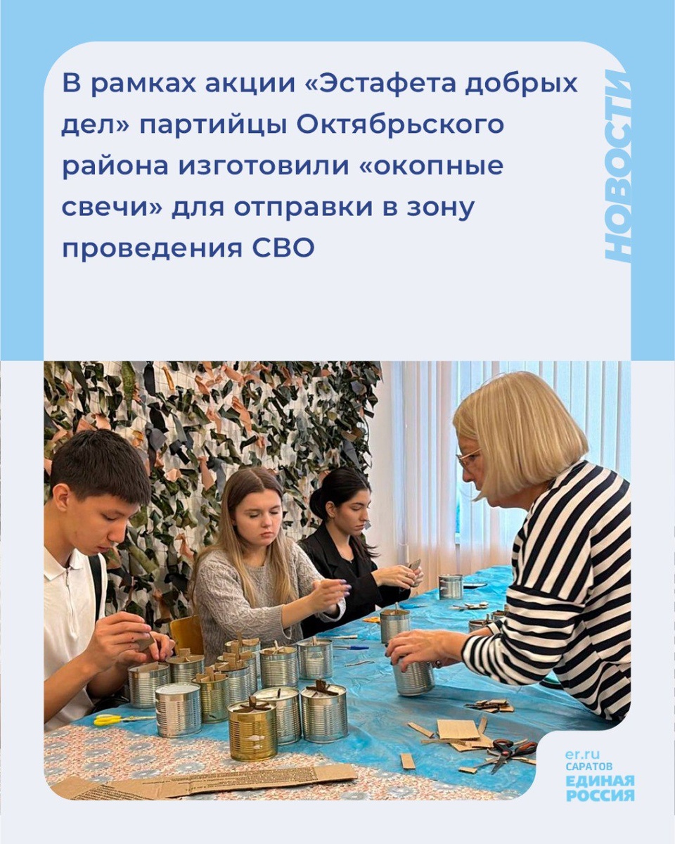 🕯️В рамках акции «Эстафеты добрых дел» партийцы Октябрьского района изготовили «окопные свечи» для отправки в зону проведения СВО