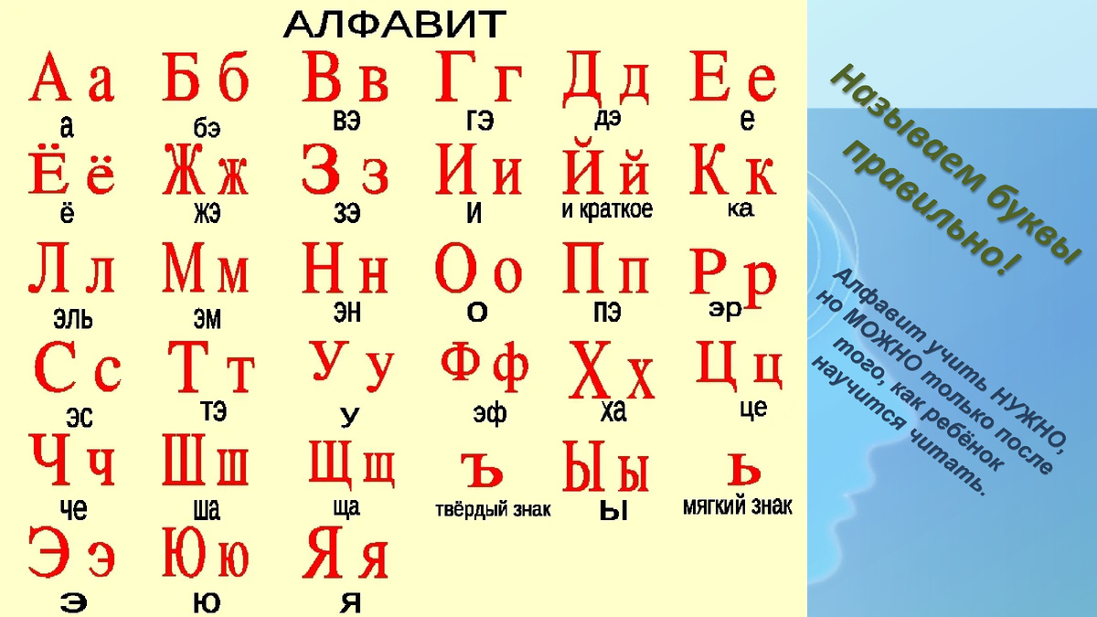 Большинство родителей учеников начальной школы сталкиваются с тем, что не могут помочь своему ребёнку в составлении схемы слова или в фонетическом разборе слова, так как, конечно, все эти «звуковые» нюансы уже забылись со времён школьной скамьи. Давайте разбираться. Для начала объясните ребёнку, что буквы и звуки речи – это разные понятия. Звуки мы слышим и произносим, а буквы – это знаки. Проведите аналогию с дорожными знаками. Есть знак «Зебра с человечком», он обозначает, что это дорожка для пешехода. Также есть знак «Б», который обозначает два звука – [б], [б‘], только вместо слова «знак» мы говорим слово «буква». Их придумали для того, чтобы записывать то, что мы говорим и слышим. Буквы мы видим, пишем, читаем и печатаем. Если ребёнок уже хорошо умеет читать, нужно выучить алфавит с правильным произношением названий букв. Зачем? Во-первых, образованный человек, на наш взгляд, должен называть буквы языка, на котором говорит, правильно. Во-вторых, в словарях, энциклопедиях, справочн