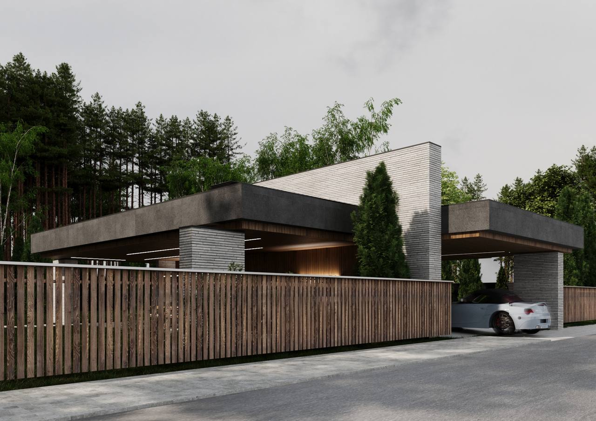 Просторное и функциональное помещение для отдыха в тёплое время года. Здесь можно провести вечер под звуки горящих в печи дров или за приготовлением ужина на открытом огне — для этого мы предусмотрели рабочую зону с раковиной. С другой стороны беседки — крытый навес для автомобилей. Если вечер с гостями затянется допоздна, они смогут уехать домой, не потревожив детей, спящих в доме. Беседка выполнена в том же стиле, что и дом, поддерживая общую минималистичную композицию. Для отделки мы использовали ригельный кирпич, композитное дерево и крупноформатный керамогранит. __ Архидом Стиль I Индивидуальность I Минимализм Проконсультироваться или заказать проект: +7 (952) 109-93-69 info@arhidom36.ru https://arhidom36.ru/