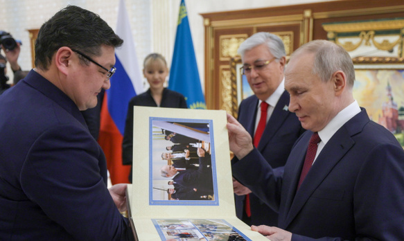 Касым-Жомарт Токаев российского коллегу встречает с ротой почетного караула и отрядом юных чтецов. Готовилась еще и пилотажная группа: на тренировках окрашивала небо в цвета российского флага. Прокатиться по вечерней Астане Путин предлагает вместе на своем лимузине «Аурус».