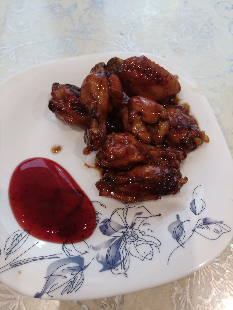 Как-то я готовила крылишки в "Добро Коле" https://dzen.ru/video/watch/671a196bf5992c6ca91ddc83 Да, я готовила заморские блюда, с желанием удивить родных. Ко многим остались вопросы и претензии, многое бы я изменила. Вот так приходишь, что чем проще, тем вкуснее. И выглядят не хуже тех, "кока кольных". Продукты: Пока сковорода разогревалась, я разрезала крылышки на три части, хвостики убрав. (Потом, из них можно сварить бульон и какой-нибудь суп) Минут, через пять жарки, добавляю соевый соус, еще десять минут жарю, без крышки, что бы лишняя влага выпарилась. Смотрю по соли, приправам и теперь тушу под крышко еще пять минут. Лишь после этого, добавляю гранатовый соус. Так крылышки, выглядят в самом начале, после добавления соуса, нужно часто мешать, потому как он начинает карамелизироваться. Тут следим, что бы не подгорели, ибо уже у финиша. "Наршараб" не приторно-сладкий, а с кислинкой, подавать можно с любым соусом, майонезом, кетчупом.