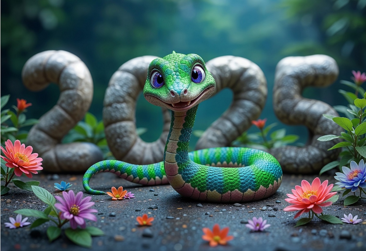 Принт с очень милым и интеллигентным змеем с яркой надписью 2025 подойдет как детям так и взрослым, будет радовать и дарить улыбку всем.
