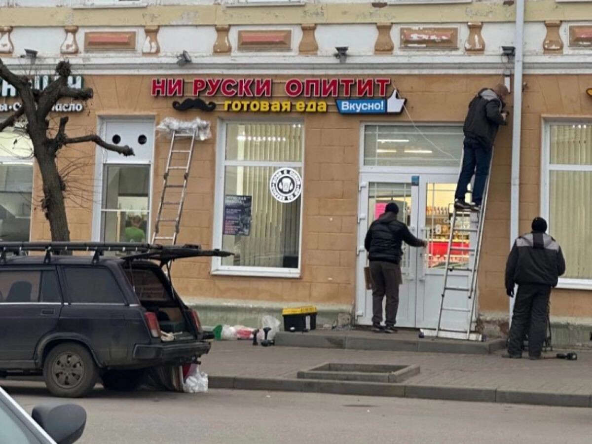 Вывеску "Ни руски опитит" в воронежском Острогожске, коверкающую русский язык, демонтируют