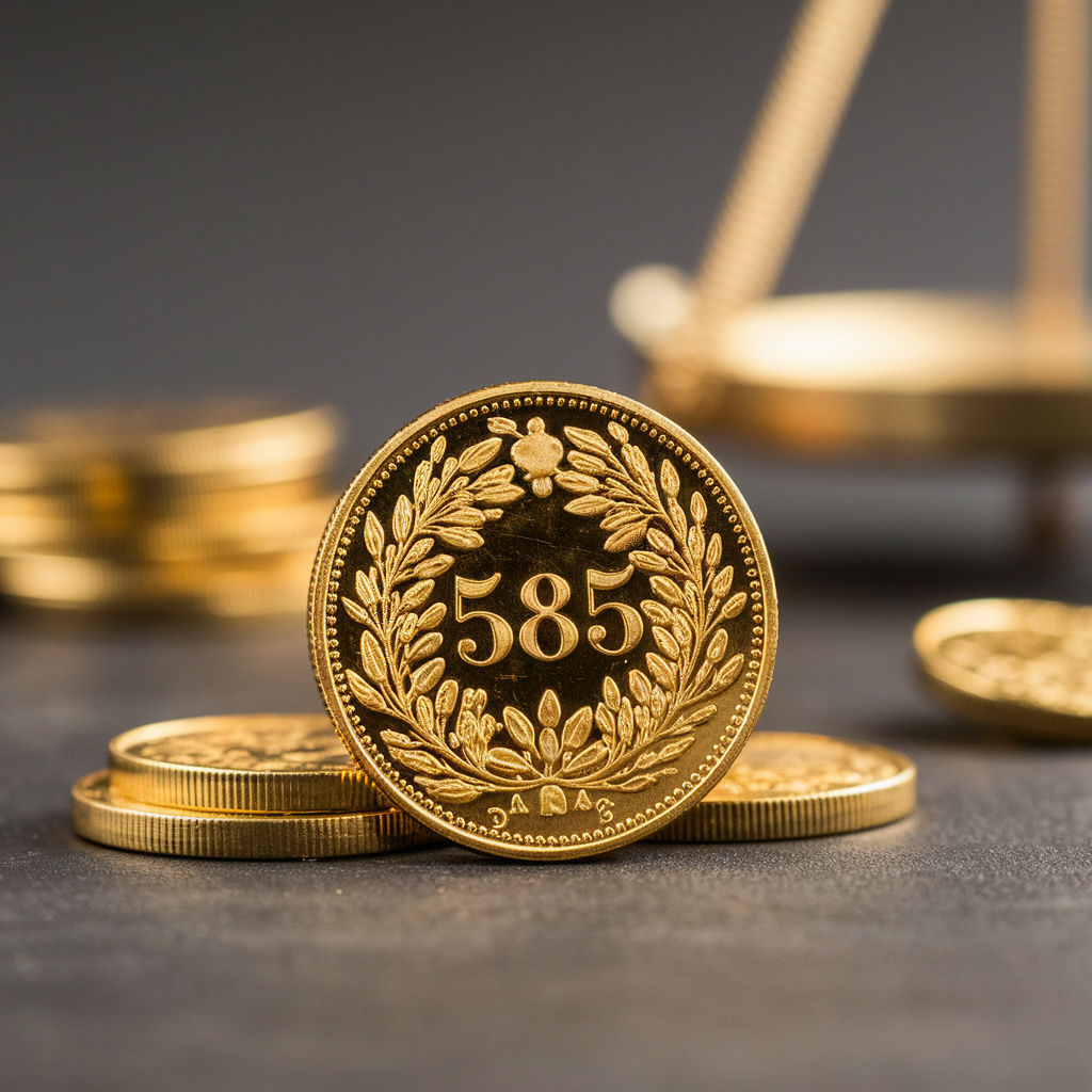Золото 585 пробы — это ювелирный стандарт, который содержит 58,5% чистого золота, а