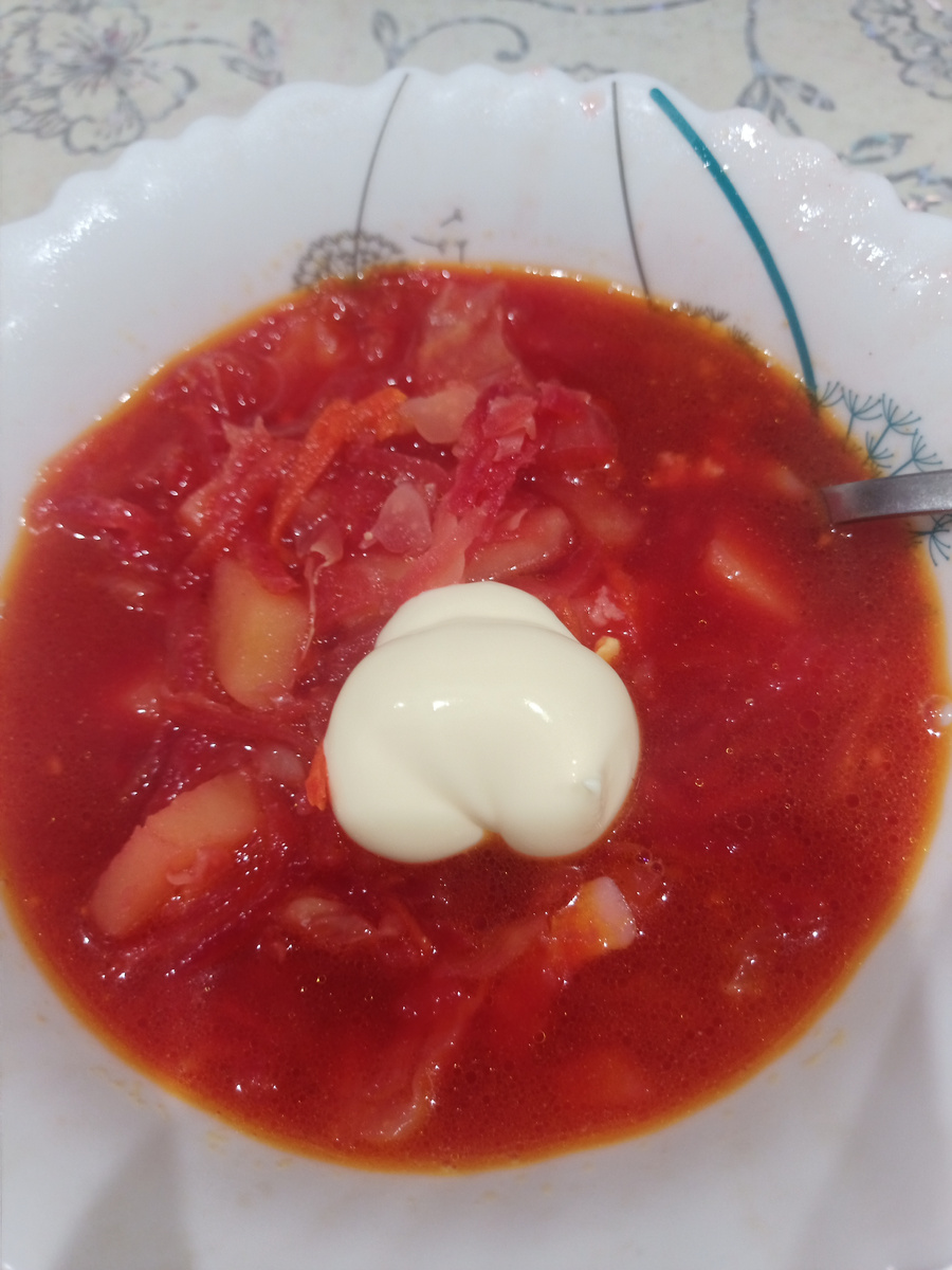 В тот день, когда я готовила крылышки, у меня остались хвостики я , из них сварила бульон, а на следующий день, приготовила легкий свекольник. https://dzen.ru/a/Z02V2iJW_jhsGR2G?share_to=link Бульон был легким, но если хотите понаваристее, то возьмите свинных костей с мясом или говяжих, потом еще и это мясо добавите в свекольник. Бульон закипает, овощи готовы, все со своего огорода, жаль только свекла не сильно красная. Бывает такая крепучая прям, краснючая, для свекольника, самое то. Продукты: Картофель режем кубиками и бросаем в кипящую воду. Параллельно делаем зажарку. Сначала лук на сковороду, потом трем морковь. Свеклу, обычно отвариваю, но тут вариан более быстрый, поэтому так же тру и на сковороду тушить. Во время тушения добавляю уксус, что бы свекла не утратила цвет и томатную пасту. Режу мелко капусту и перекладываю зажарку в кастрюлю, следом нашинкованную капусту, солю. После ки