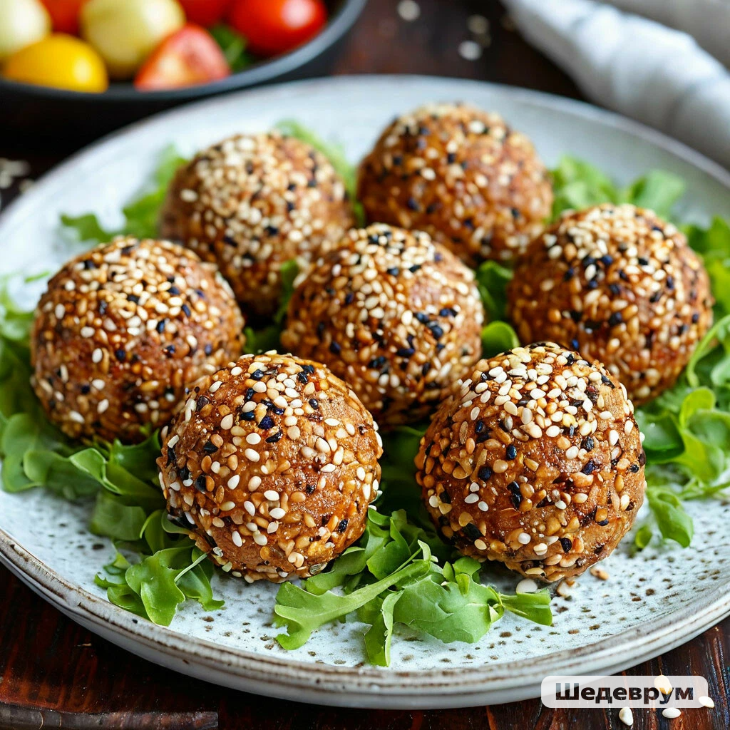 Хочу предложить нежную и оригинальную закуску, это необычная интерпритация салата "Мимоза" без майонеза. Инградиенты: · Горбуша (консервы) – 250 г. · Картофель отварной – 1 шт. · Морковь отварная – 1 шт. · Яйцо – 2 шт. · Твёрдый сыр – 100 г. · Творог кремообразный 0-5% - 100 г · Соус соевый – 1-2 стол. ложки. · Кунжут. Приготовление: 1. Размять рыбу очень тщательно. 2. Натереть картофель, яйца, морковь, сыр и смешать с рыбой, творогом, соевым соусом. 3. Обжарить кунжут до светло-жёлтого цвета. 4. Из массы сформировать небольшие шарики и обвалять в кунжутных зёрнах. 5. Вместо кунжута можно взять измельчённую зелень укропа и приготовить зелёные шарики. 6. Полученные шарики отправить в холодильник на 1- 2 часа. Приятного аппетита!