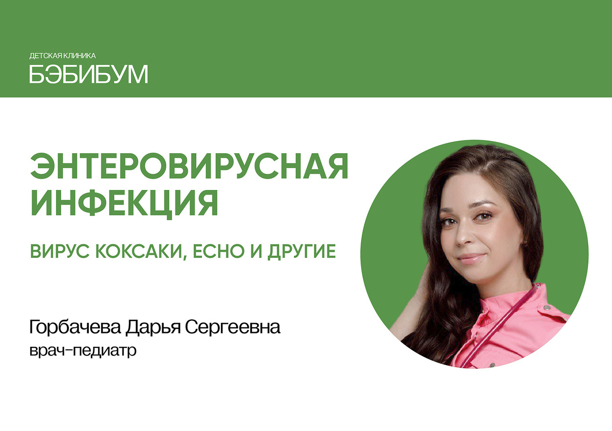 Энтеровирусная инфекция – это группа вирусов, которая может вызывать различные заболевания у детей. Многие дети переносят инфекцию без серьезных последствий, а некоторые формы могут быть болезненными и требовать медицинской помощи. С врачом-педиатром клиники Бэбибум Горбачевой Дарьей Сергеевной рассмотрим, что нужно знать о энтеровирусах, их симптомы, как они передаются, как их лечить и когда обращаться к врачу. Бэбибум. Лечим, играя! Энтеровирусные инфекции очень распространены и передаются во время контакта с зараженными людьми. Существует множество типов вирусов, но наиболее распространенными являются: Коксаки A и Коксаки B, ECHO, известные более как болезнь «рука-нога-рот» или турецкая ветрянка. Как передаются энтеровирусные инфекции (Коксаки, ECHO и другие)? Основным механизмом заражения является воздушно-капельный и фекально-оральный. Это означает, что он может передаваться: Симптомы энтеровирусной инфекции (вирусов Коксаки и ECHO) Симптомы энтеровирусной инфекции могут варьирова