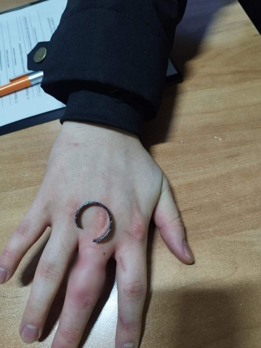 29 ноября в Аварийно-спасательную службу Курской области обратился с просьбой молодой человек. Он не смог снять кольцо с пальца, конечность сильно опухла. Спасатели дежурной смены оперативно оказали молодому человеку всю необходимую помощь. Других подробностей в АСС не рассказали.