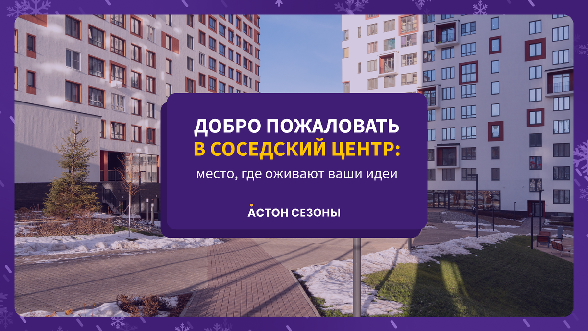 Мечтали об идеальном месте, где можно не только расслабиться, но и воплотить свои задумки в жизнь? Соседский центр в Астон.Сезоны уже открыл свои двери для всех, кто ценит уют, творчество и новые знакомства. Здесь каждый найдёт уголок для себя: будь то мастер-класс, йога, просмотр фильма или даже ваш собственный проект. Пространство для жизни и вдохновения Мы знаем, что квартира — это ваша личная крепость. Но что, если за её пределами начинается не менее комфортное и вдохновляющее пространство? В Соседском центре можно 👇🏻 Здесь все продумано для удобства жителей: от стильного интерьера до технического оснащения. Волшебный сезон в Соседском центре Сейчас начинается самое особенное время года — предновогодняя пора. Значит, пора зажигать огоньки, творить чудеса и делиться ими с окружающими. Наш соседский центр станет для этого идеальной площадкой. А вот почему 👇🏻 Мы приглашаем не только жителей Астон.Сезоны, но и тех, кто давно мечтал делиться своими талантами с другими. Хотите запуст