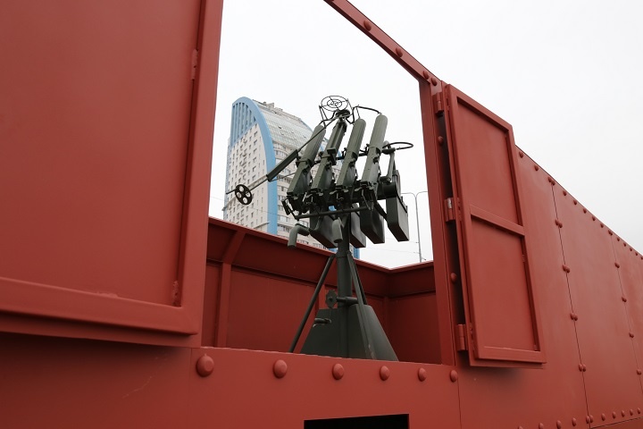 Вооружение устанавливают на макете бронепоезда времен войны в Волгограде