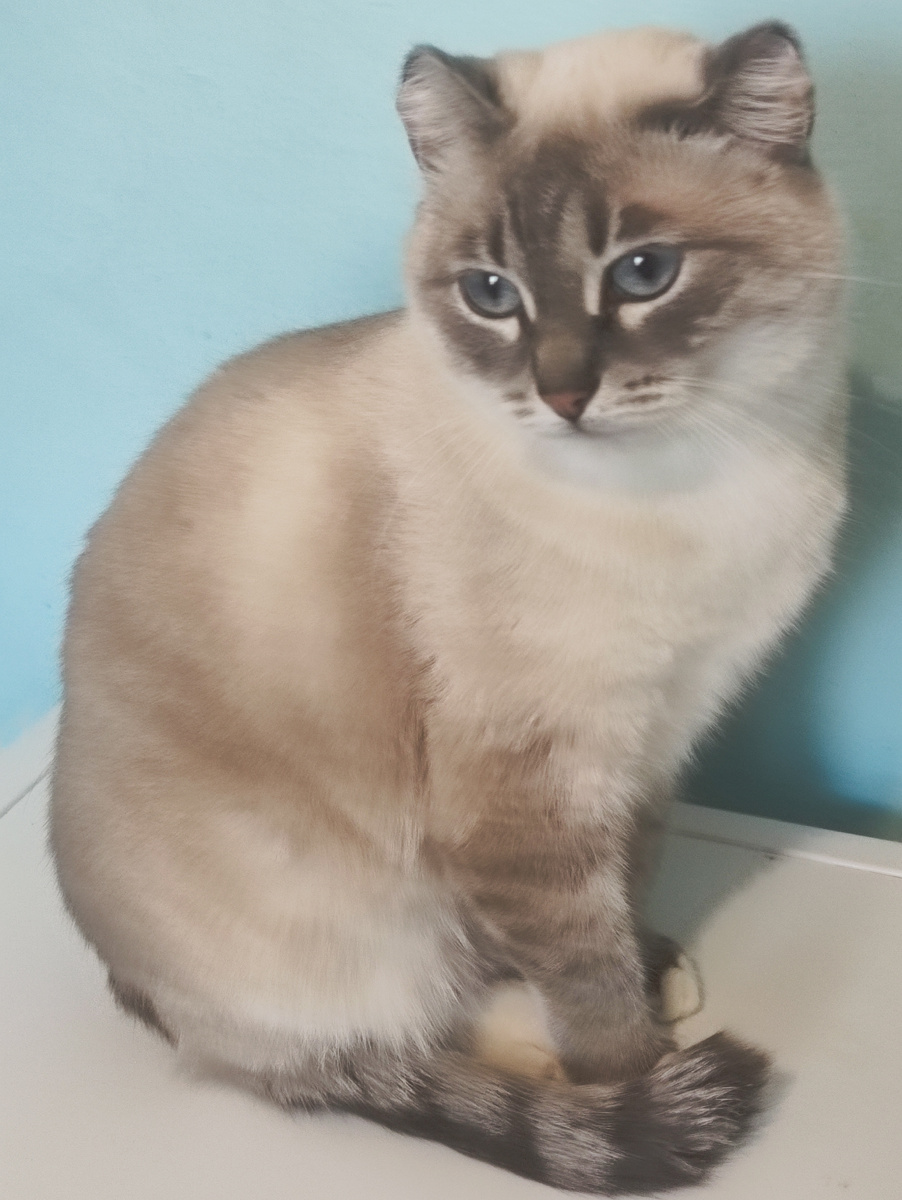 А это сынок Амалии, почти выросший Лёха, ему уже 7 месяцев, он очень крупный и плюшевый, очень похож на британского котика, хотя мама голубоглазая тайка.