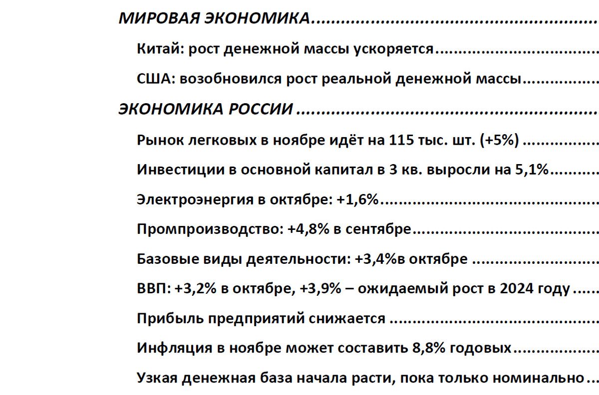 - При сохранении октябрьских темпов роста в течение всего 4 квартала, рост ВВП за год составит +3,9%. Это ниже нашего февральского прогноза (+4,5%) и выше роста 2023 года (+3,6%).
