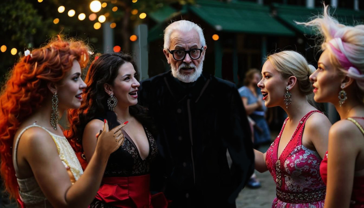 Одна из них ловко уселась на колени к Яну и тут же сделала вид, что падает, так что Яну пришлось подхватить ее, приобняв. Девушки засмеялись. На лице старика появилась растерянность и недоумение: