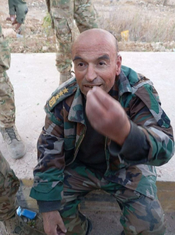 Трёхзвёздочный сирийский генерал, попавший в плен в Алеппо. Но генерала, по крайней мере, сразу не расстреляли, судя по фото, он что-то кому-то доказывает, жестикулируя, и чувствует себя в безопасности. А вот солдатам сирийской армии, сдавшимся в плен к салафитам в том же Алеппо, повезло меньше — их расстреляли. На видео, которое сейчас уже отовсюду выпилили (например, на Одноклассниках оно «не прошло модерацию», на ВК при попытке его посмотреть выдаётся «ошибка» — ведь соцсети страшно берегут своих читателей от всякого шокового контента) они сперва позируют с поднятыми руками, потом салафиты поливают пленных автоматным огнём. Кадр из видео: пленный солдат Сирийской арабской армии. Через полминуты после этого кадра его расстреляли