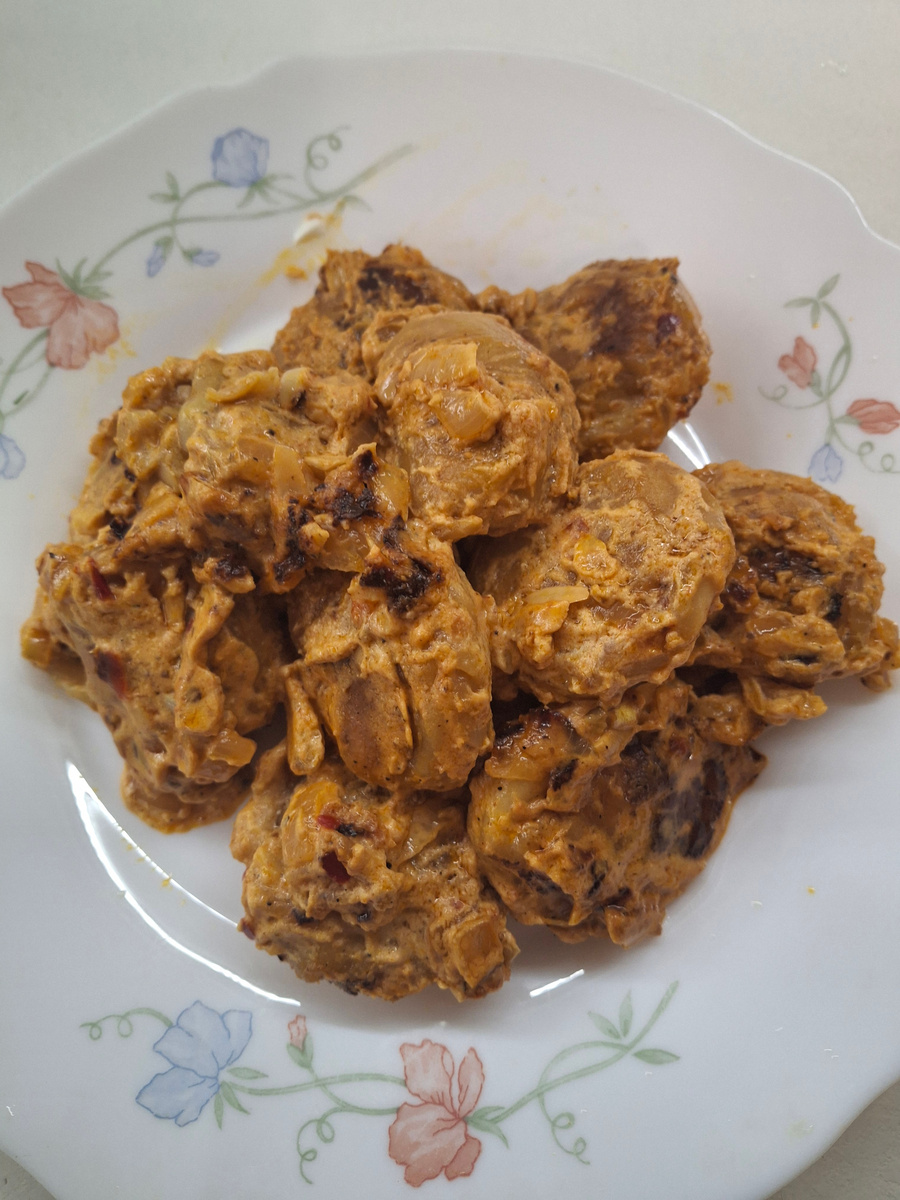 Состав: Приготовление: На разогретую сковороду выкладываем масло, затем пельмени (размораживать не надо). Жарим на сильном огне 3 минуты, помешивая. Добавляем мелко нарезанный лук. Жарим 1,5 минуты, помешиваем. Добавляем: мелко нарезанный чеснок, томатную пасту и хорошо перемешиваем, чтоб все пельмени смазались томатом. Вводим сметану и специи. Перемешиваем, как закипит, убавляем огонь и тушим на медленном огне 5 минут. Готово. Я подавала с овощным салатом. Приятного аппетита!!