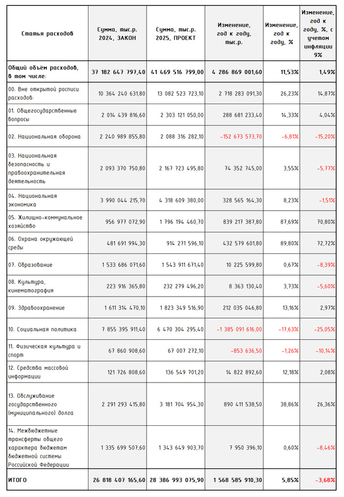 О проекте бюджета 2025 одной таблицей. 30.09.2024 Напоминаю таблицу проекта федерального бюджета: А вот так федеральный бюджет выглядит в принятой редакции: Рассмотрим основные отличия принятого федерального бюджета от его проекта: