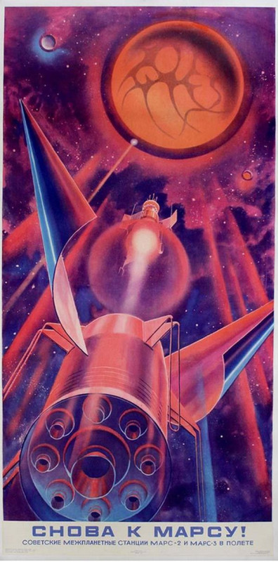 Андрей Соколов (1931—2007). «Снова к Марсу! Советские межпланетные станции «Марс-2» и «Марс-3» в полёте». Плакат. 1971
