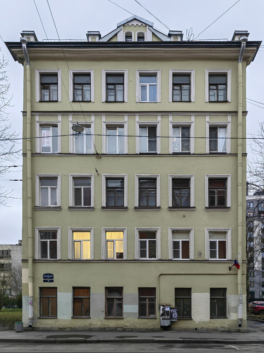 Здание же, на котором размещена старая адресная табличка, было построено в 1902 году (арх. Зограф А.А.). Но на адресной табличке не указано название улицы. Означает ли это, что табличка была сделана не для этого дома, а для постройки, которая стаяла когда-то на этом месте ранее? В то время, когда у этой улицы ещё не было названия (то есть до 16 апреля 1887 года)?