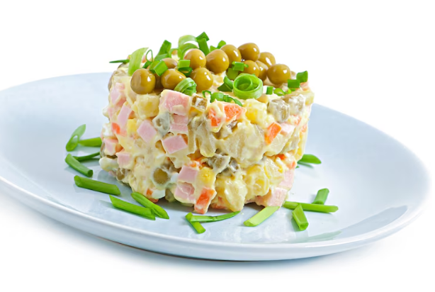 Впервые салат «Оливье» подали в московском ресторане «Эрмитаж» в середине XIX века. Это была настоящая кулинарная сенсация: мясо рябчиков, язычки раков, чёрная икра, каперсы, солёные огурцы и невероятно вкусный соус на основе французского майонеза. Это блюдо готовилось с акцентом на роскошь и изысканность.