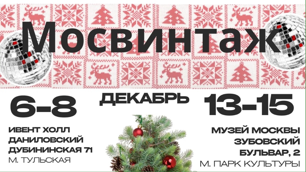 Привет, дорогие друзья! Я рада приветствовать вас на своём канале Дзен, где продолжается увлекательная ежемесячная рубрика – анонсы различных мероприятий, которые проходят в Московском регионе для всех любителей барахолок! Так что, пожалуйста, не забудьте подписаться на мой канал, чтобы совершенно точно не пропустить все самые важные и интересные события! Итак, давайте же поговорим о том, какие же захватывающие и интересные предновогодние мероприятия ждут нас в грядущем декабре? 1. ⭐Новогодний Мосвинтаж-1 пройдет 6-8 декабря в ивент-холле Даниловский на Тульской. Вас ждут выставки и лекции, а также елочный базар с советскими игрушками. Здесь можно будет найти всё от антикварной мебели до забавных сувениров. ⭐Новогодний Мосвинтаж-2 состоится 13-15 декабря в Музее Москвы на Зубовском бульваре. Это место идеально подходит для тех, кто хочет окунуться в атмосферу старинных времен, наслаждаясь современными удобствами. Вас ждут тематические выставки и сладкий базар. АДРЕС: Новогодний Мосв