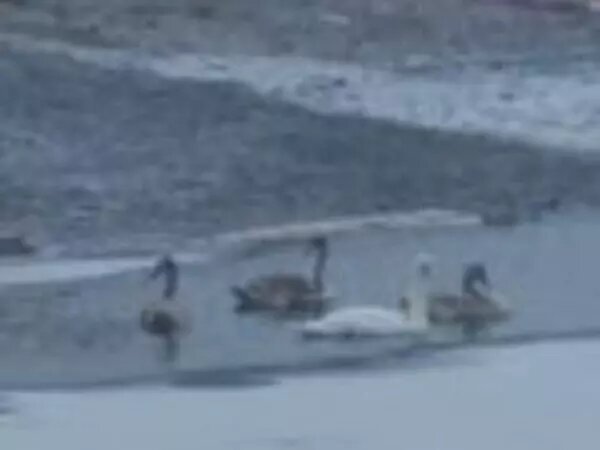 В Ростовской области четыре лебедя плавают в озере и не могут улететь