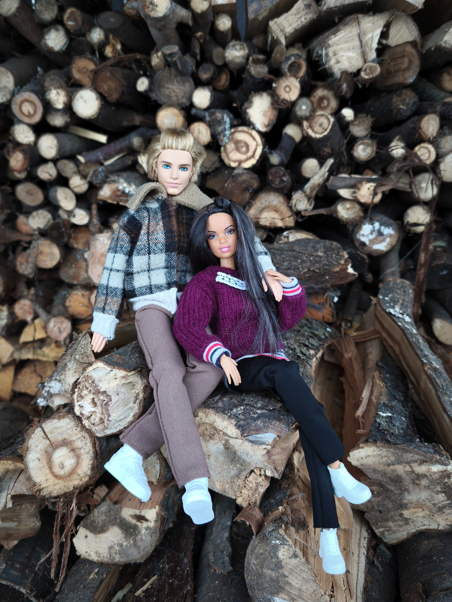 Как хорошо фотографировать кукол, когда некуда торопиться, когда никто не отвлекает, можно спокойно творить. Именно такой момент выдался у меня в прошедшие выходные, когда мы гостили у родителей мужа - они живут в своем доме. Свой дом - это печка, это баня, а значит и дрова. Поленница показалась мне подходящим фоном для романтичной кукольной фотосессии. Позировала мне парочка из нулевых - подруга Барби на молде Аша, наследница Кристи, и Кен из серии fashionistas, которого я назвала Энди. Первым у меня появился Энди. Я увидела Лиама на канале @lawlietdoll и очень он мне понравился, стала искать на авито. Подвернулся по хорошей цене вот этот парень, шарнирный, я так обрадовалась, а когда он приехал, до меня дошло, что это не Лиам🤣 Но желания выселить такого красавчика не возникло. Мне очень понравилось, как у него уложены волосы, и наверное это единственный кукломужчина-блондин, который у меня поселился) Был один игровой, но что-то не понравился он мне вживую своей хитрой моськой, я