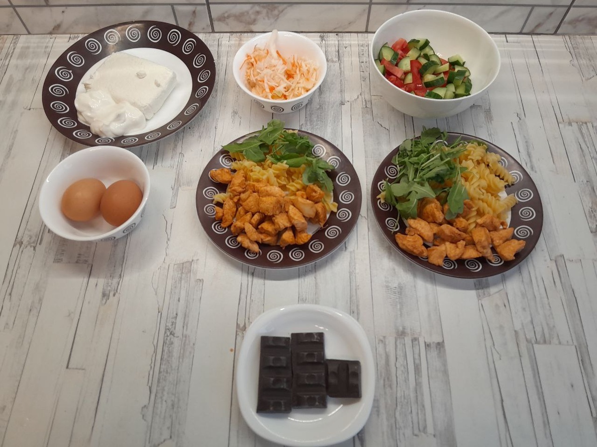 Составляя меню на определенное количество калорий, важно помнить, что чем проще блюда, тем проще его соблюдать. Вот как может выглядеть простое меню на 1300 ккал/ день. Для стандартизации порции используется кружка вместимостью 300мл Макароны и мясо разделяем на 2 приема. Если многовато, то можно и на 3. Тоже самое с творогом. Вместо макарон можно взять любой другой гарнир.