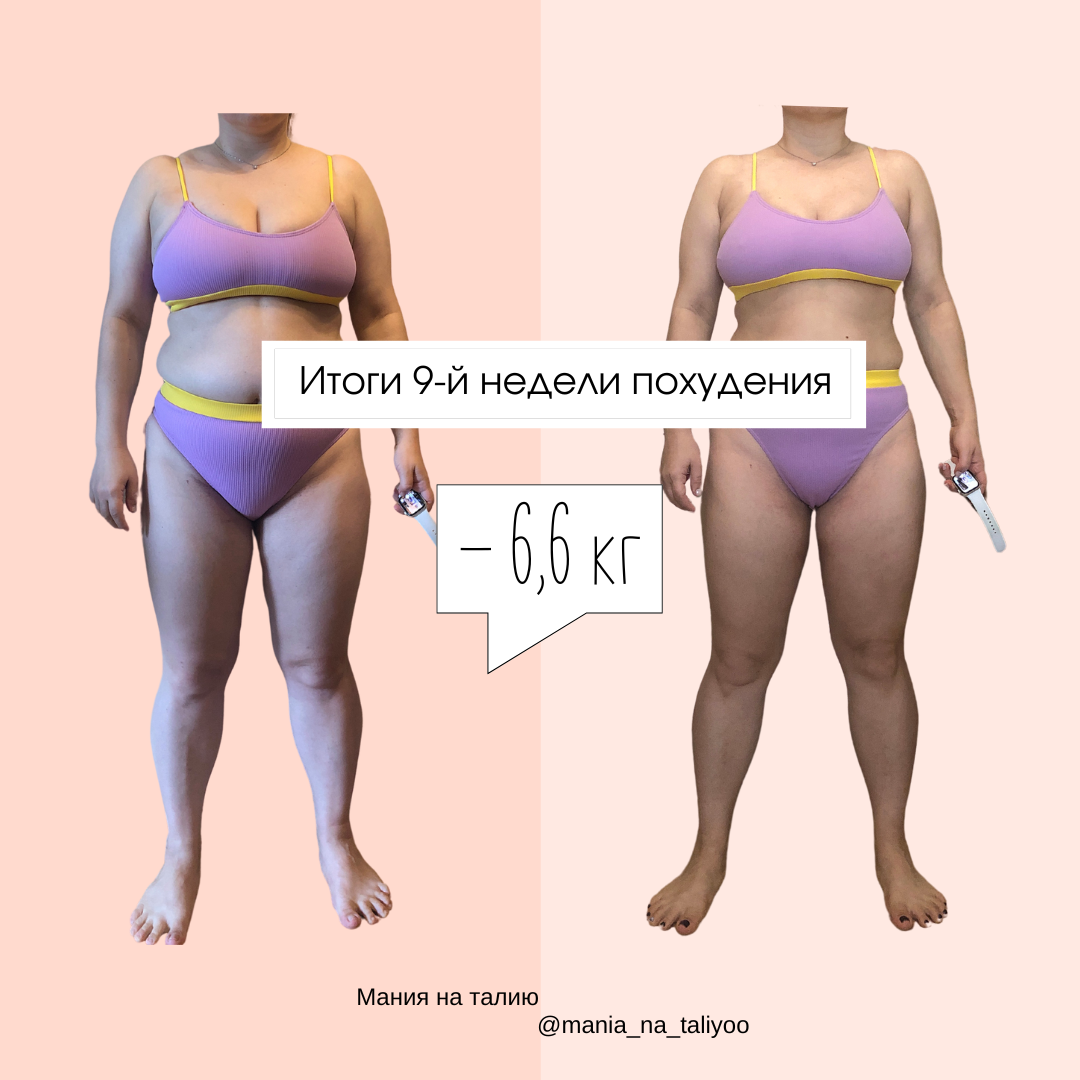 Ну вот, за плечами уже целых 2 месяца, а, казалось бы, только вчера еще был октябрь! Томить не буду, сразу к делу. Смотрим на результаты девятой недели? Если вдруг ваше знакомство с моим блогом началось с этого поста, то ниже я оставляю ссылку на самый первый свой день - там вы узнаете, с чего всё началось, а еще перейдете по цепочке от одного дня к другому, вплоть до сегодняшнего момента ОГ - 99,5 см (- 3 см) ОТ - 77,5 см (- 5,5 см) ОБ - 100 см (- 4,5 см) Вес - 65,6 кг Я не вижу смысла сравнивать эти цифры с цифрами недельной давности. По сути в цифрах отличия минимальны: вес гуляет вокруг 65,5 кг всю неделю, а объемы стоят - это мы уже с вами подробно обсудили во вчерашнем посте. Зато визуально фотки этой недели и прошлой отличаются (ниже выложу фотосет от 25.11). По ощущениям - у меня наконец-то ушла "лишняя" вода. Я не знаю точно, что было тому виной, но последнюю неделю я просыпаюсь "в складочку" и припухшая) Через пару часов после подъема вода уходила. Возможно, виной
