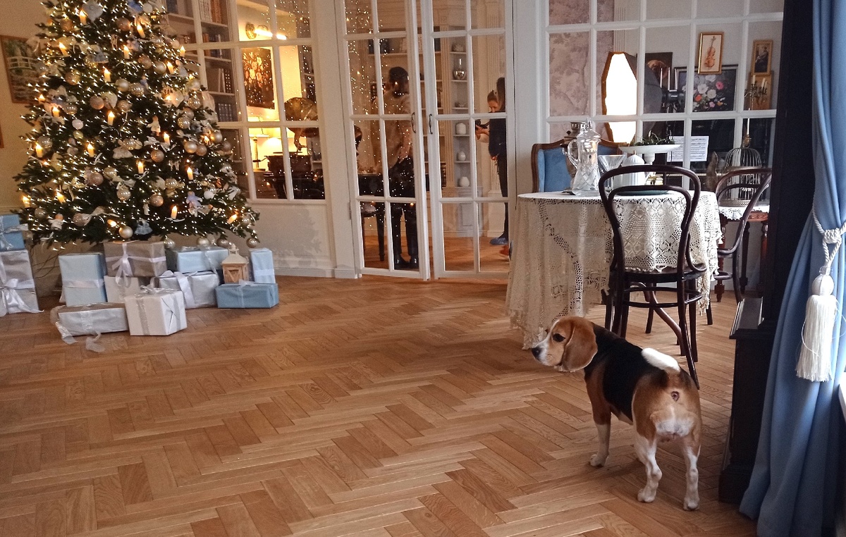 Рабочий день (тот, который часов с 9 обычно начинается, а не как у меня – с 5 утра) я встретила в съемочной студии, где создавался новогодний поздравительный видеоролик с детьми и собаками (не нашими). Туда меня позвали как «опытного человека», могущего, если что, помочь с животными (хотя на деле они оказались максимально воспитанными и послушными). Вообще взаимодействовать с чужими зверями очень даже полезно (или хотя бы просто наблюдать за ними) – чтобы и глаз не замыливался, и навыки не терять. Со своими ты уже выстроил определенные отношения, они обычно знают, что от тебя ждать. С незнакомыми животными все совсем иначе. Им может и вовсе до тебя нет дела, что уж говорить о послушании? Свои звери к тебе уже привыкли и воспринимают как родного – с любыми недостатками и нюансами, многое «прощают». С чужими ты знакомишься с чистого листа, и все твои шероховатости могут проявиться очень выпукло и даже оттолкнуть от себя четвероного партнера по коммуникации. При работе со своими животными