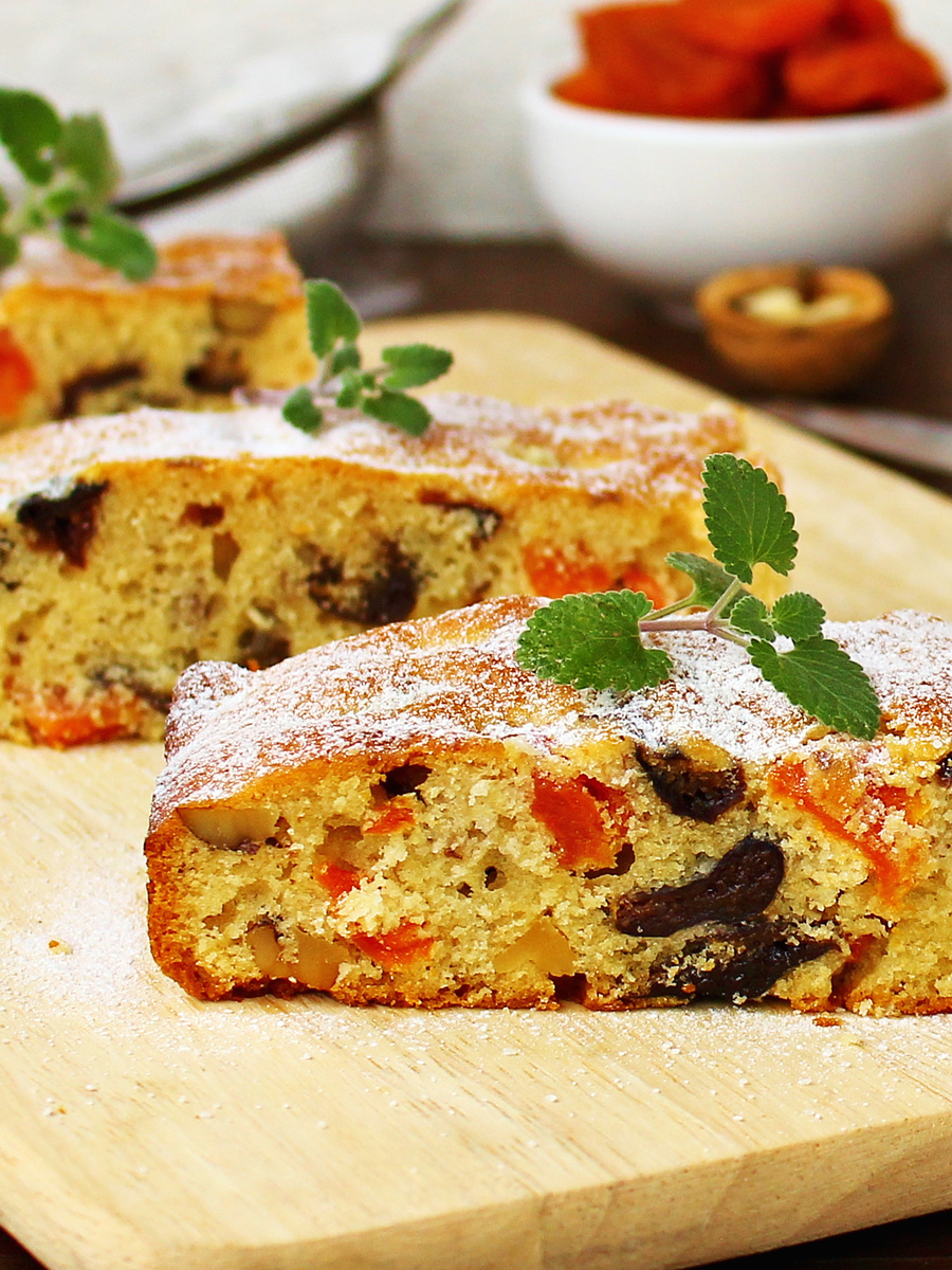 А получилось – пальчики оближешь! Согреет, порадует и оставит на кухне аромат счастья. Кусочки сухофруктов, подсушенные грецкие орехи, и всё это в окружении мягкого, чуть влажного теста с лёгким яблочным или цитрусовым оттенком. Не пирог, а маленький праздник, который создаётся всего за час. Его можно испечь к приходу гостей. А можно приготовить ради себя, любимой, налить чай, отрезать кусочек и почувствовать, что всё идёт как надо. Особенно приятно, что он готовится без лишнего масла и из самых доступных ингредиентов – идеальный вариант для тех, кто не хочет нагружать себя тяжёлой выпечкой. Кстати, сахар вполне можно и не добавлять – получится совсем хорошо! 🛒 Что нам понадобится? Использовалась форма для выпечки: 22×30 см. 👩🍳 Как будем готовить? 1. Начинаем с сухофруктов. Промываем курагу и чернослив под горячей водой, пока они не станут чистыми и мягкими. Если они слишком твёрдые, заливаем кипятком на 5 минут, после чего обсушиваем и нарезаем небольшими кусочками – так, чтобы ка