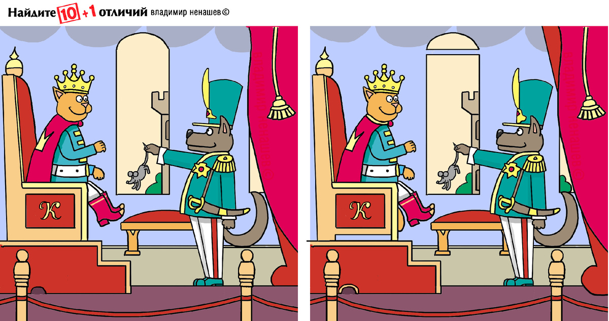 Вот какая сегодня у нас приятная тема. Надо найти за две минуты все 11 отличий.