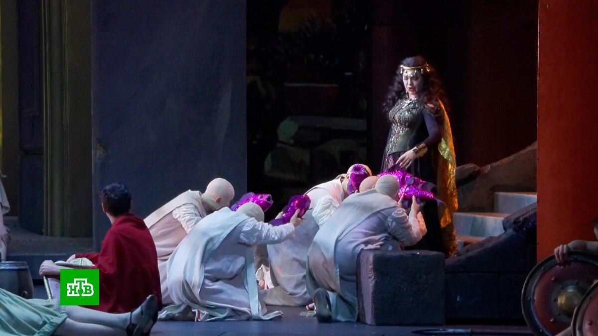 [ Смотреть видео на сайте НТВ ] Впервые в Большом театре представили «Саламбо». На исторической сцене показали отрывки из неоконченной оперы Модеста Мусоргского, созданной по одноименному роману Гюстава Флобера. Сценическую версию представил режиссер Сергей Новиков, а музыкальный руководитель постановки — маэстро Валерий Гергиев. Второй век до нашей эры, во дворце правителя Карфагена пируют голодные наемники, которые вернулись с войны и ждут оплаты. И пока варвары восхищаются дорогой утварью и драгоценностями, их предводитель Мато вдруг видит сокровище другого рода — прекрасную Саламбо, дочь правителя. Оперу о повстанце Мато, которого погубила любовь к прекрасной Саламбо, Модест Мусоргский начал писать после прочтения популярного в то время одноименного романа Гюстава Флобера. Античная экзотика и страсти, приводящие героев к беспощадной жестокости, так увлекли молодого композитора, что прочитанное начало складываться в мелодии. Ростислав Протасов, художник-постановщик: «„Саламбо“ как ф