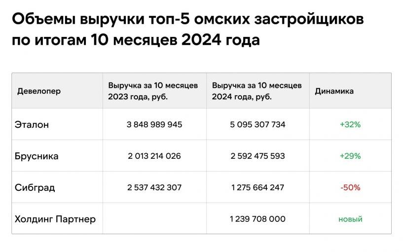 Вопреки снижению спроса. Назван топ-5 застройщиков Омска с ростом выручки от продаж квартир по ДДУ