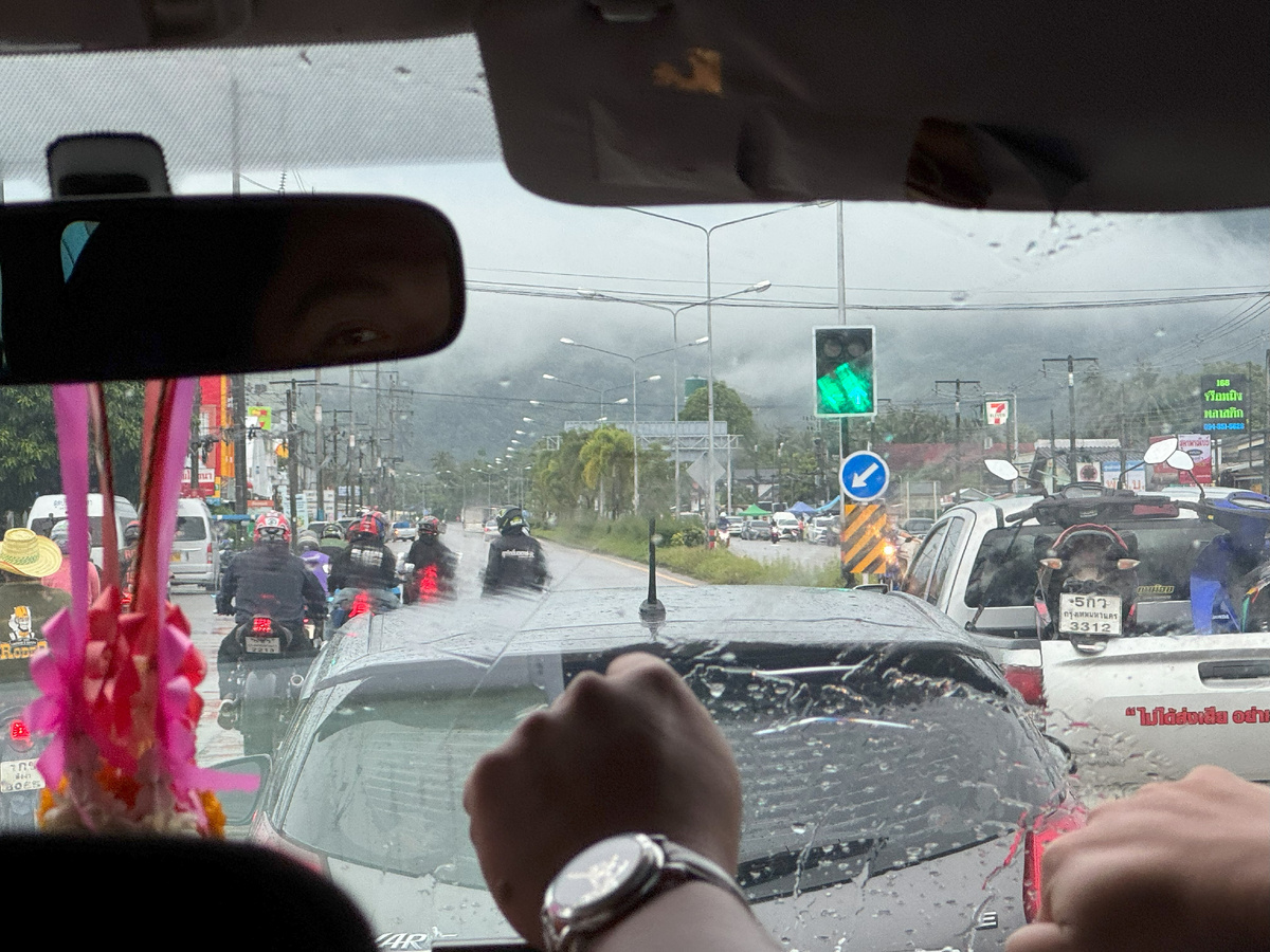 Дорога нас ждала еще дальняя, с Краби до Као Сока ехали мы часа 4 -5, в переполненном просто до отказу микроавтобусе. На задних сиденьях люди теснились вместе с походными рюкзаками, ну а мы ухватили места у двери, хотя и ехать мне все равно пришлось в позе лотоса.