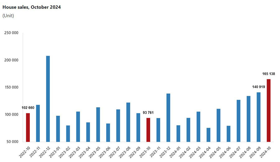 По данным Турецкого статистического института, в сентябре продажи выросли на 37% в годовом исчислении, а октябре этот показатель достиг 76,1%. Общее количество сделок на рынке жилой недвижимости повысилось до 165 138 единиц. Наибольшее количество продаж зафиксировано в Стамбуле (24 812), Анкаре (15 257) и Измире (8 658). За 10 м