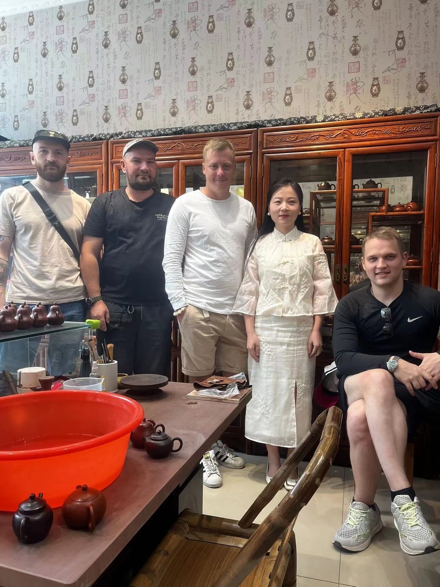 Наша команда занимается популяризацией китайского чая в России уже больше 10 лет, поэтому мы решили, что это хорошая возможность познакомить наших ценителей чая с китайской культурой и природой, а людей интересующихся путешествиями с китайским чаем. Начнем с того что в Исине значительно холоднее чем в Уишани (около 15 градусов против 30+ в Уишани) позавтракали лапшой и двинули в сторону рынка чайников. Заходили в магазинчики, смотрели и выбирали чайники. Конечно тонкости определения глины нам еще предстоит познать, потому как два одинаковых чайника могут отличатся в разы в цене, в зависимости от глины из которой сделаны и конечна же от мастера который их сделал. Зашли в мастерскую где познакомились с молодой мастерицей, которая делает очень красивые чайники дровяного обжига с ручной росписью. Купили у нее несколько изделий. Что удивительно когда мы зашли ходили по первому этажу, где было не очень много изделий и в какой то момент она позвала нас на второй этаж, а там просто полки котор