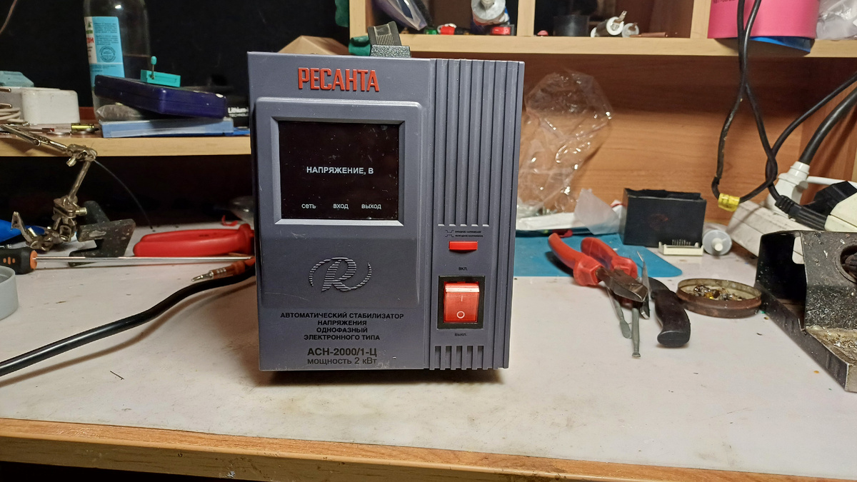 Что то давненько у нас в статье не было какого нибудь стабилизатора напряжения или источника бесперебойного питания. Нет, их как приносили, так и приносят. Неисправность в бесперебойнике почти всегда заключается в изношенной батарее. Так как довольно большое количество современных устройств с высаженным в ноль аккумулятором просто не включится, замена батареи решает проблему. Ну а стабилизаторы приносят в основном после попытки раздуть апельсин до размера баскетбольного мяча, путем подключения какого нибудь сварочного аппарата к пятикиловаттному стабилизатору. В результате контакт на каком нибудь реле просто сплавляется от перегруза и аппарат выдаёт ошибку. Всё это уже на канале было и повторять одно и то же неинтересно. Но сегодня к нами принесли стабилизатор, погибший не в результате перегруза. Стабилизатор напряжения Ресанта АСН-2000/1-Ц, мощность нагрузки до 2 кВт, однофазный. Принесли его с жалобой, что гудит и не работает. Н-да, если дверь закрыта и за ней гудят, то там либо гуд
